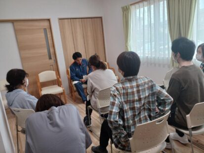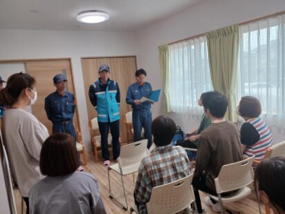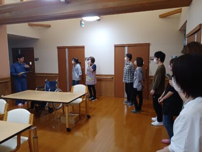 【研修】救命救急お知らせ / 2025-06-24 福岡消防署の皆さんにご協力いただき、 6/11 ケアタウンふくおかにて、救命救急の研修を行いました。 今回はケアタウングループの職員が集合!! 前回は救命救急について学びましたが、今回は出血時の対応方法と救急車要請の判断について講習と実技指導を受けました。