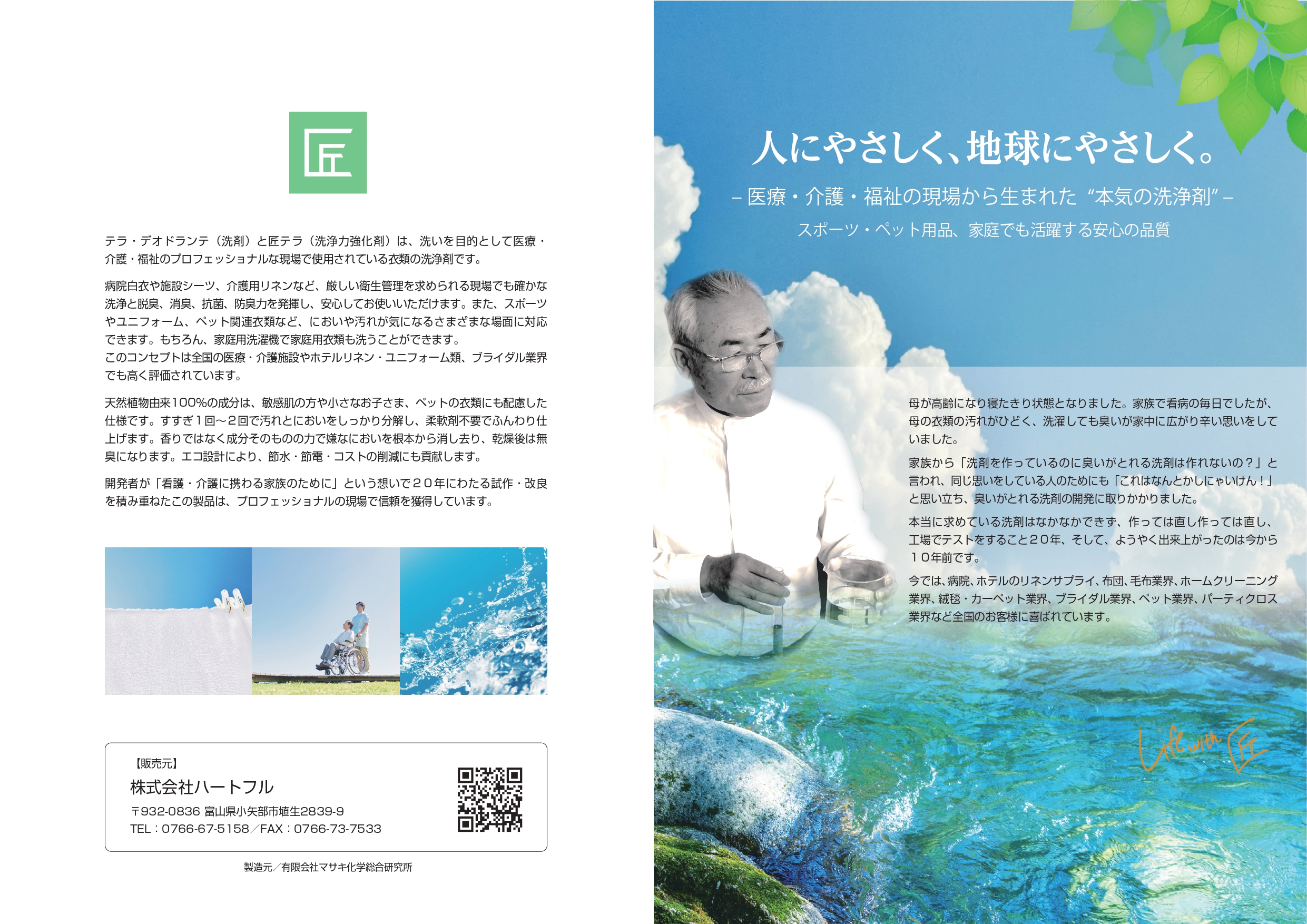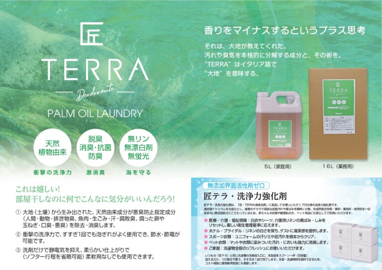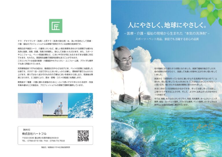 マサキ化学総合研究所/「匠・TERRA」 液体洗剤 販売スタートお知らせ / 2025-08-07 こんにちは👋 当施設では マサキ化学総合研究所様の液体洗剤 「匠・TERRA」を使用しております。 この度、株式会社ハートフルで販売を始めました。 ご用命の方は TEL:0766-67-5158 までお気軽にお電話ください。